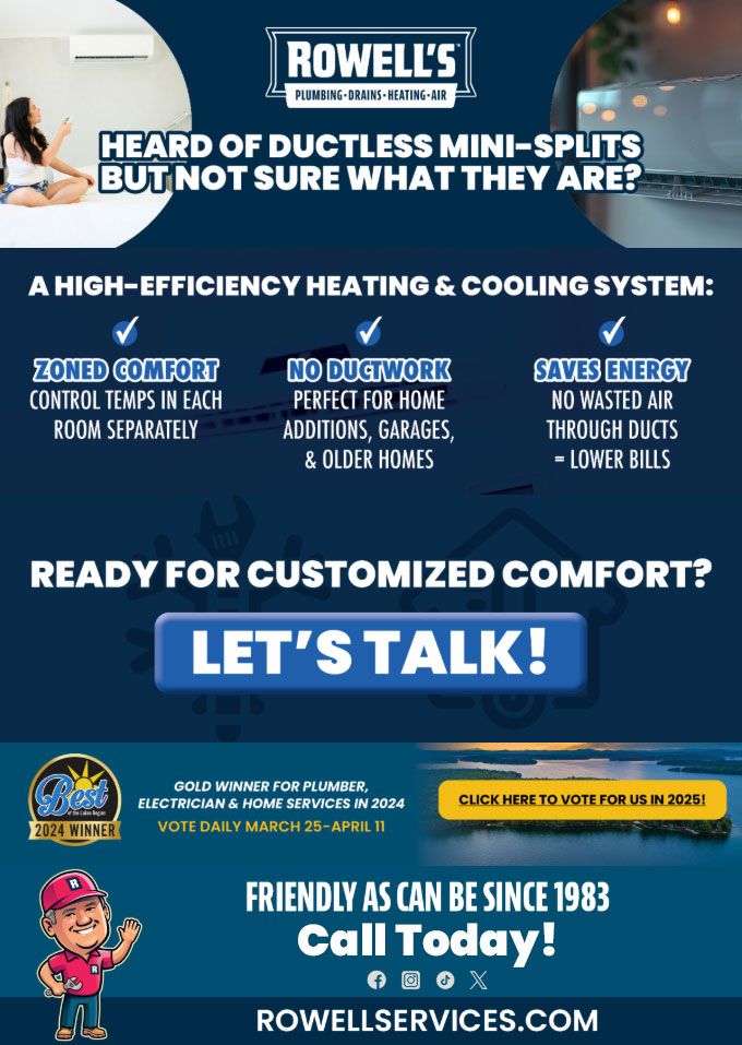 "Friendly As Can Be Since 1983!" When you need help with your plumbing, drains, heating, cooling or electrical in Hebron, you can always rely on Rowell's Services! Call us now or book online!